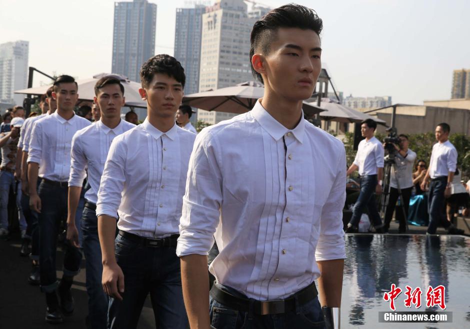On October 10, 2014, 42 finalists of the Shanghai International Model Contest make their debut at Shanghai Designer Salon. Some of them are selected by designers to attend the 2015 Spring/Summer Shanghai Fashion Week. The final will be held on October 24, 2014. (Chinanews/Pan Suofei)