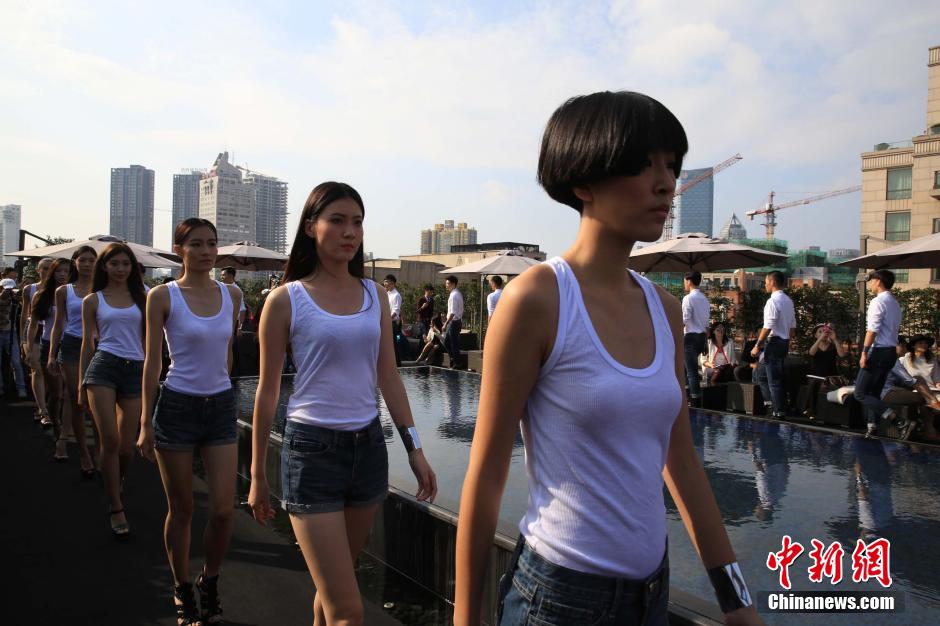 On October 10, 2014, 42 finalists of the Shanghai International Model Contest make their debut at Shanghai Designer Salon. Some of them are selected by designers to attend the 2015 Spring/Summer Shanghai Fashion Week. The final will be held on October 24, 2014. (Chinanews/Pan Suofei)