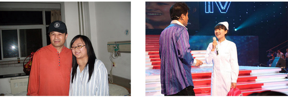 Wang's story became known to the country through the famous talent show Xingguang Dadao on Apr. 12, 2008. After the broadcast, Wang Mingxiao, President of Beijing Meitan Hospital, along with relevant experts, performed a 6-hour surgery on Wang. Having been fighting against thyroid cancer for 13 years, Wang got rid of the psychological burden thanks to the surgery and thoroughly recovered. (CNTV/Wang Zhe)