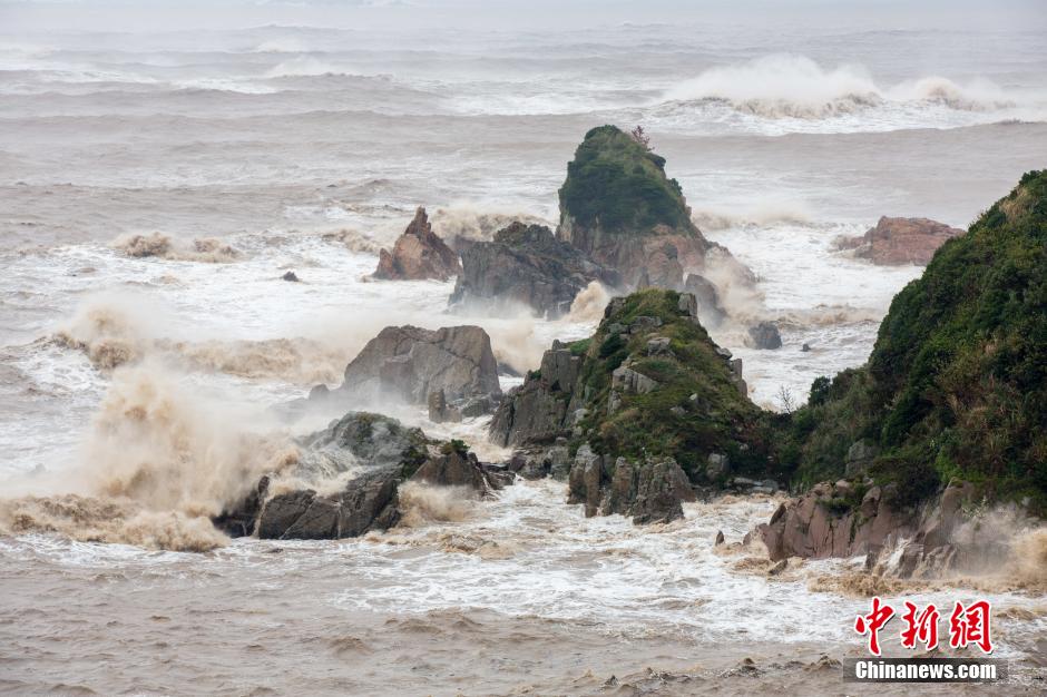 Photo shows the high waves caused by typhoon Vongfong off the coast of Zhoushan, east China's Zhejiang Province, Oct. 12, 2014. (Photo/CNS)