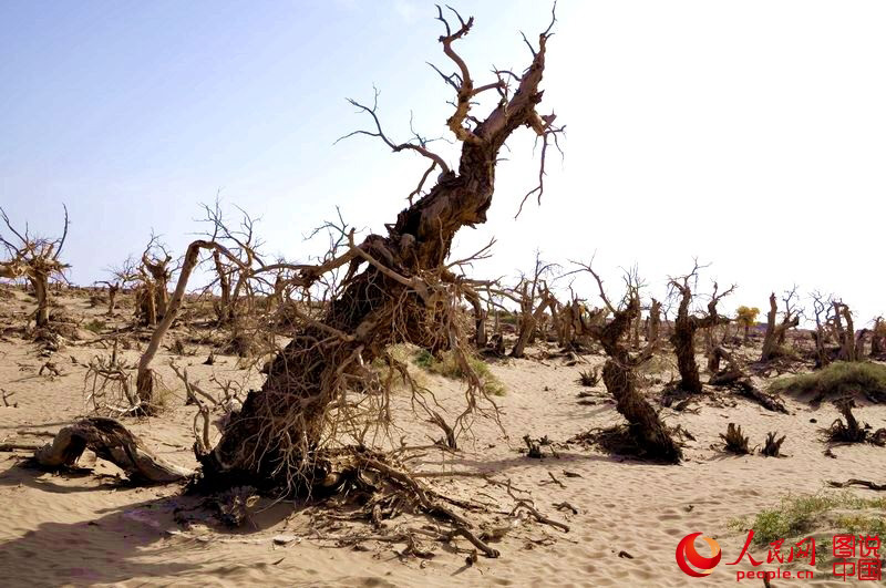 The dead forest is located in Ejin Banner, north China’s of Inner Mongolia Autonomous Region. It used to be a thick populus euphratica forest. Because of rivers diversion in history, the trees died of drought. The grotesque dead trees present a mysterious and wild scene. It is often called “the odd forest” by tourists. (Photo source: people.cn)