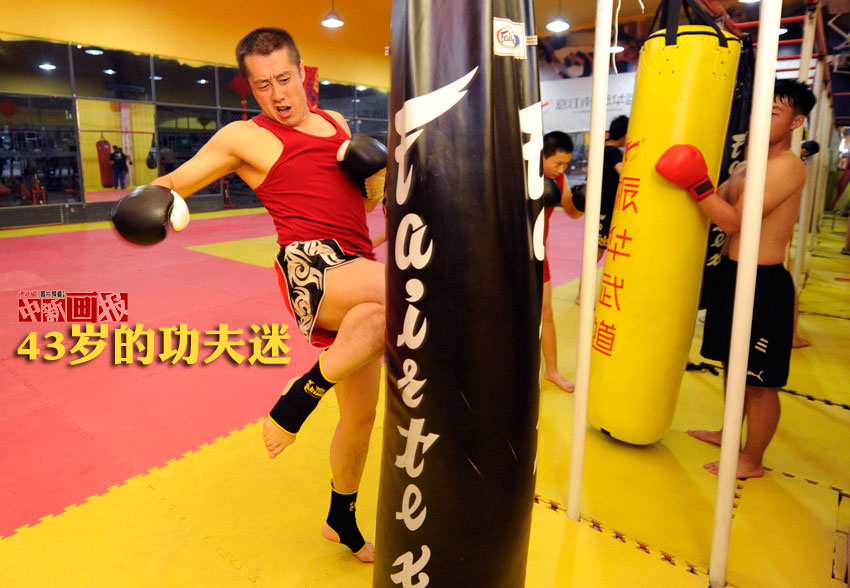 Hou Wei is a prison guard in northeast China's Changchun City. He joined a fight club and learned free combat together with many young men in 2013. He practiced this not only to build up body but also to solve some emergencies at work.