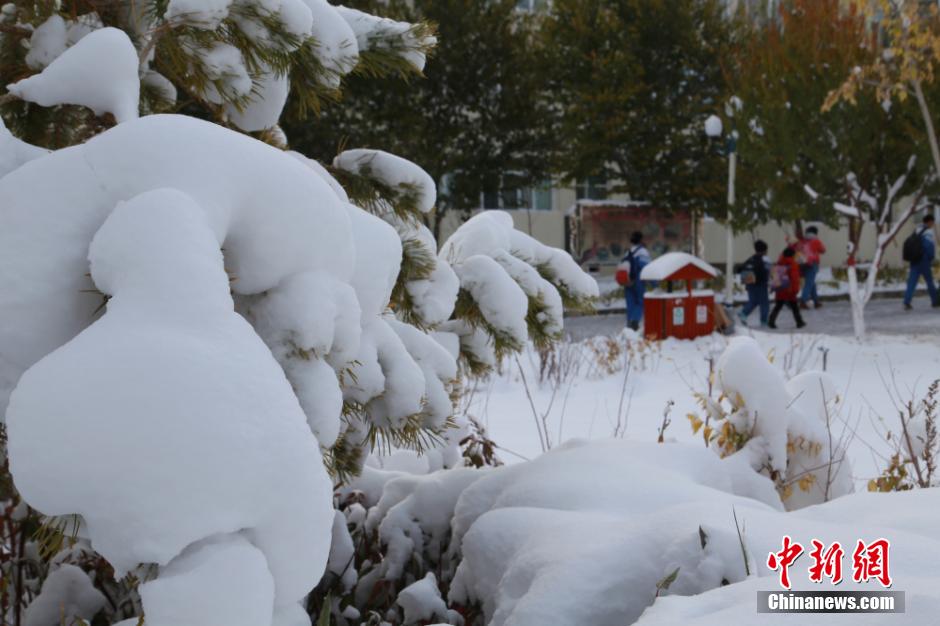 Heavy snow hit Balikun county in east Xinjiang from the evening of October 9 to the dawn of October 10. The sky became clear after snow and the lowest temperature reached minus 9 degrees Celsius. (Chinanews.com/Zhang Guojun)