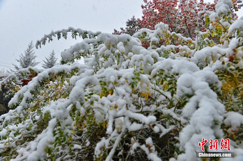 | Heavy snow hit Balikun county in east Xinjiang from the evening of October 9 to the dawn of October 10. The sky became clear after snow and the lowest temperature reached minus 9 degrees Celsius. (Chinanews.com/Zhang Guojun) |