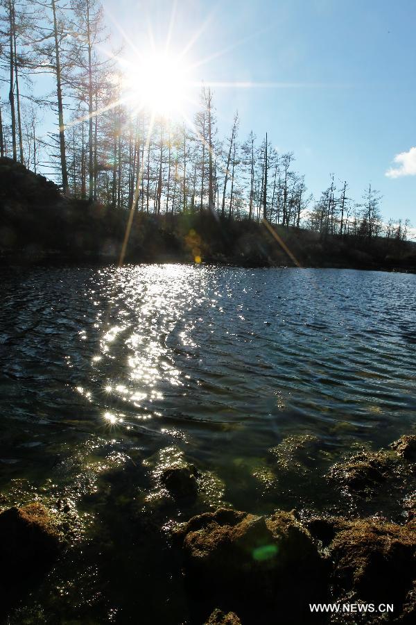 Photo taken on Oct. 12, 2014 shows the autumn scenery of Shitanglin, a landform of basalts, in the Aershan National Forest Park, north China's Inner Mongolia Autonomous Region. (Xinhua)