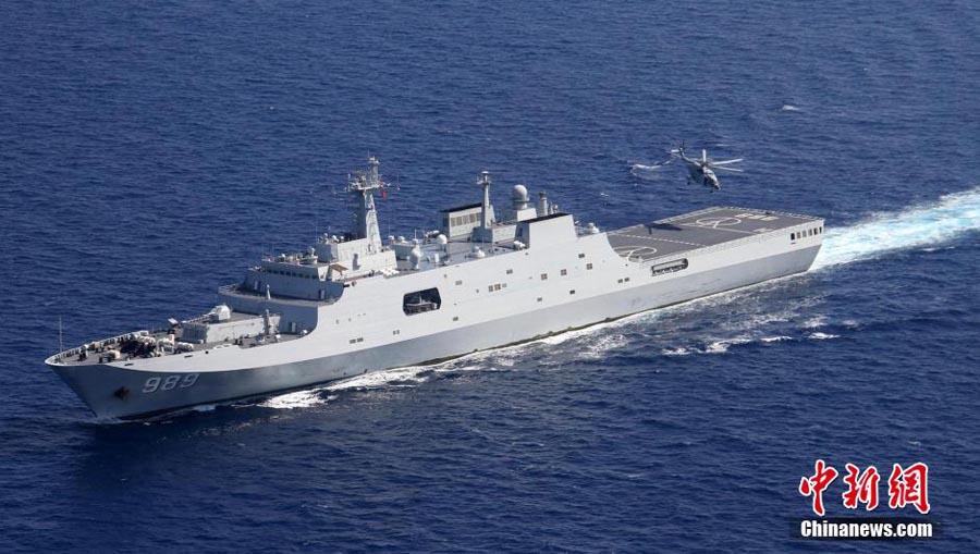 Chinese naval fleet conducts ship-based helicopter flight training (4)