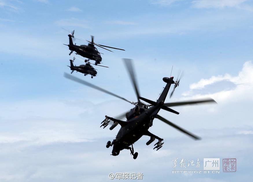 An army aviation brigade of Guangzhou Military Region conducts a drill for the Z-10 attack helicopter formation on Oct. 13, 2014. (Photo source: Microblog of a PLA Daily reporter)