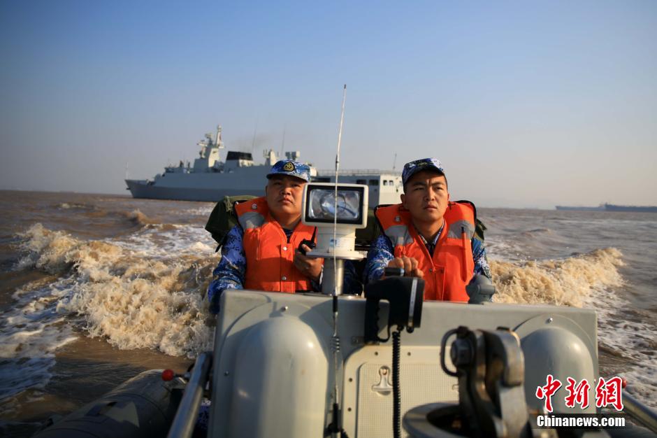 The newly-commissioned warship Quanzhou fires its main gun at the target in a maritime drill on October 15, 2014. Recently, the guided missile frigate Quanzhou of the East China Sea Fleet of the Chinese People's Liberation Army Navy (PLAN) has been engaged in coordination training with other warships of different types on various subjects including ship steering, refueling, ship towing and night navigation. This training is designed to verify the training effectiveness and speed up the generation of the combat capability of the frigate which was commissioned to the PLAN two months ago. (China News Service/Zhou Daoxian)