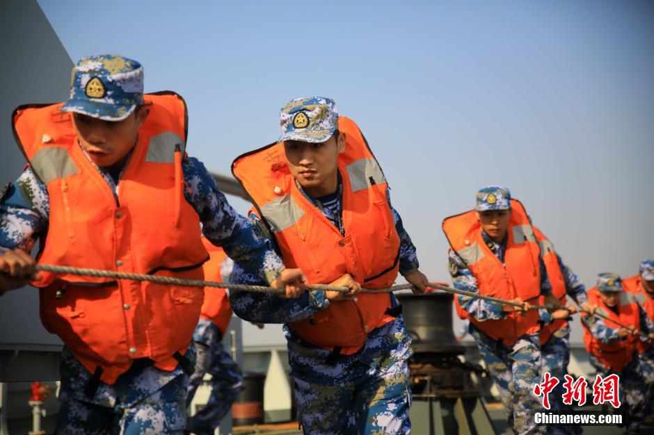 The newly-commissioned warship Quanzhou fires its main gun at the target in a maritime drill on October 15, 2014. Recently, the guided missile frigate Quanzhou of the East China Sea Fleet of the Chinese People's Liberation Army Navy (PLAN) has been engaged in coordination training with other warships of different types on various subjects including ship steering, refueling, ship towing and night navigation. This training is designed to verify the training effectiveness and speed up the generation of the combat capability of the frigate which was commissioned to the PLAN two months ago. (China News Service/Zhou Daoxian)