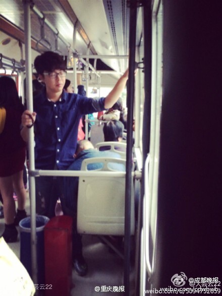 Youngster acts as 'body cushion' of napping old man aboard bus (2)