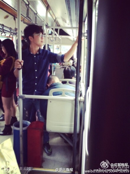 | Zhao acts as the old man's 'body cushion'. (Photo/weibo.com) |