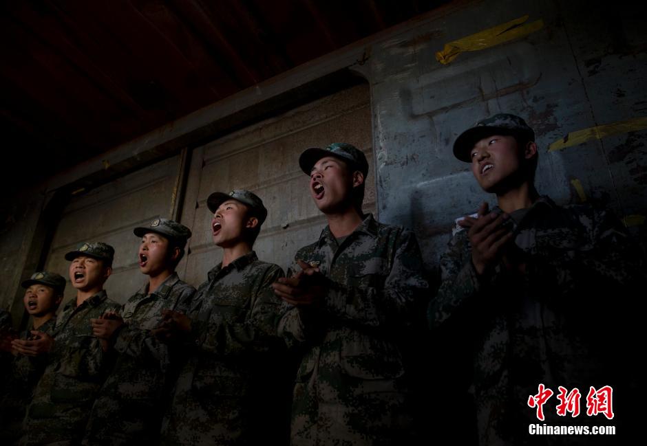 Soldiers sing together at the rest time on Sept. 25, 2014. (Chinanews/Liu Guanguan)