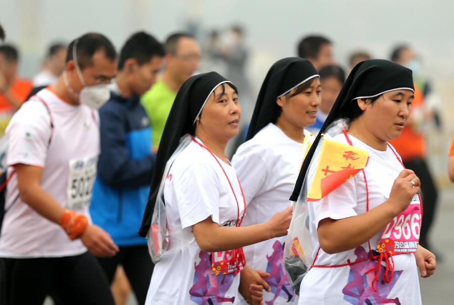 2014 Beijing Int'l Marathon kicks off in haze-surrounded Beijing (2)