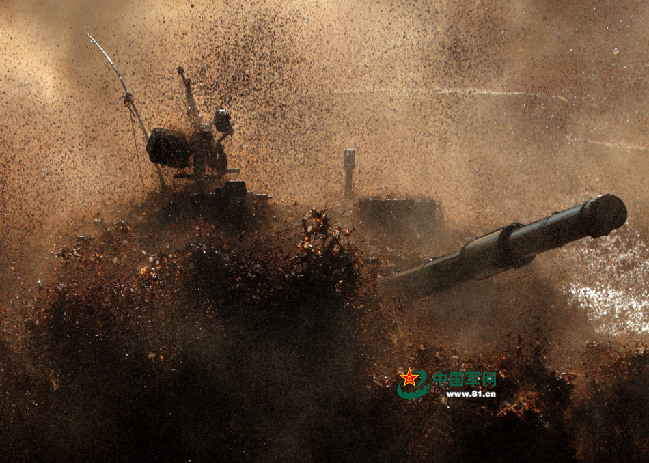 An armored brigade from Nanjing Military Region carries out drill in hilly and muddy fields to improve their fighting ability on the afternoon of Oct. 10, 2014. (Chinamil.com.cn/Zhang Junrong, Shao Zhonghong, Li Qinhua)