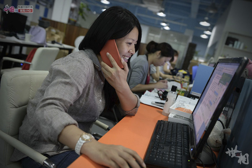 Lu answers the phone of her customers. (China.com.cn/Lai Xinlin)