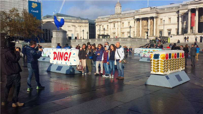 LONDON Oct. 21, People's Daily Online -- Twenty-eight New Routemaster bus sculptures were unveiled for the first time today in Trafalgar Square. These sculptures forms a collection of 60 bus sculptures, commissioned by Transport for London (TfL), which will be placed across London on four walking trails as part of the Year of the Bus Sculpture Trail. The first three trails will be installed for the public to enjoy from Monday 20 October with a fourth following for Christmas.