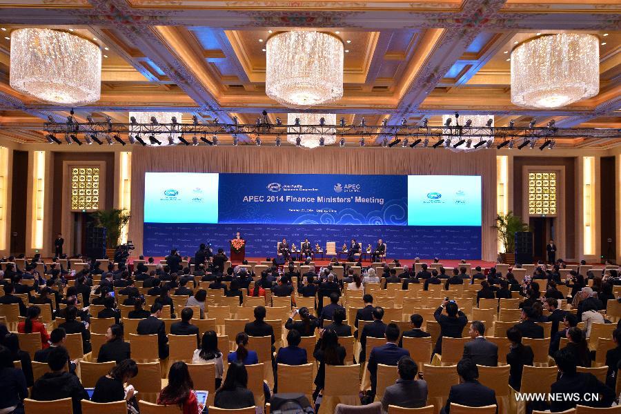 Delegates attend the APEC (Asia-Pacific Economic Cooperation) 2014 Finance Ministers' Meeting in Beijing, capital of China, Oct. 22, 2014. (Xinhua/Li Xin)