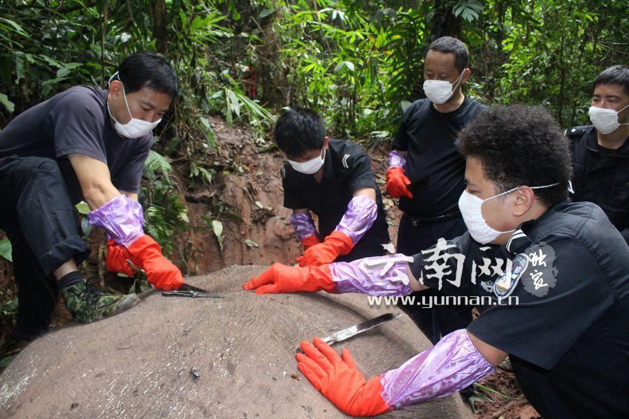 A carcass of a male Asian elephant without tusks was found on Oct. 16 in the forest in Mengla area, southwest China's Yunnan province. The body was already decomposed, and the tusks had been removed. It was shot by a standard firearm. A task force has been formed by the Forest Public Security Bureau to investigate the case. A reward of about $6,500 was offered to anyone who can provide clues to the investigation. (Photo/Yunnan.cn)