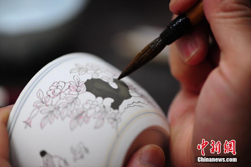 The production process of "chicken cups" in Jingdezhen. (Chinanews.com/Bao Lin)