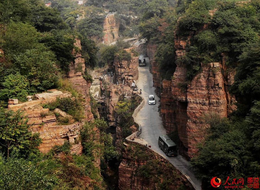 Located in Xinxiang city, central China’s Henan province, the Guoliang cliff corridor is a road built along the cliff. The construction of this miraculous road lasted five years from 1972 to 1977 and it was all built by hand by villagers of Guoliang Village. It is now known as one of “the 10 steepest roads in the world”. (Photo source: people.cn)