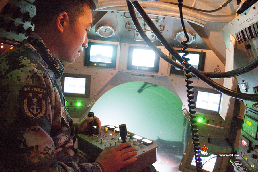 From October 21 to October 23, 2014, a rescue team of the North China Sea Fleet conducts a recue drill in bad weather conditions. A LR-7 type deep submergence rescue vessel successfully connected with a submarine 40 meters under the sea surface and transferred 8 submariners. (www. 81.cn/Wang Changxin and Meng Lingyu)