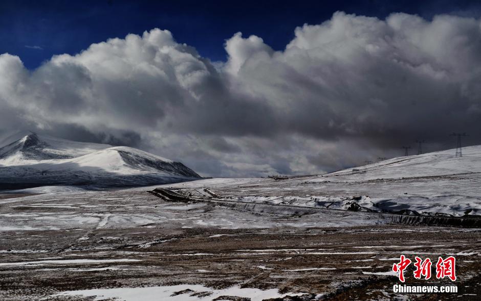 In late October, a snowfall hit the Qinghai-Tibet region. The vast grasslands, mountains and rivers are all covered with silver "coats". Together with cattle and sheep, they form unique plateau scenery. (CNS PHOTO/Liu Zhongjun)