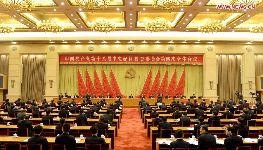 | The fourth plenary session of the 18th Central Commission for Discipline Inspection (CCDI) of the Communist Party of China (CPC) is held in Beijing, capital of China, Oct. 25, 2014. (Xinhua/Ma Zhancheng) |