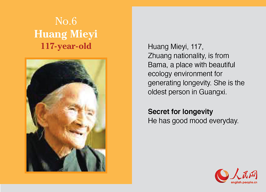On Oct. 21, the Gerontological Society of China unveiled the list of the 10 oldest living people in China. Their average age is 119.7 years old. Of the 10, one is male and the others are female. They are from 7 provinces and 6 different ethnic groups. The three oldest ones are from Xinjiang.