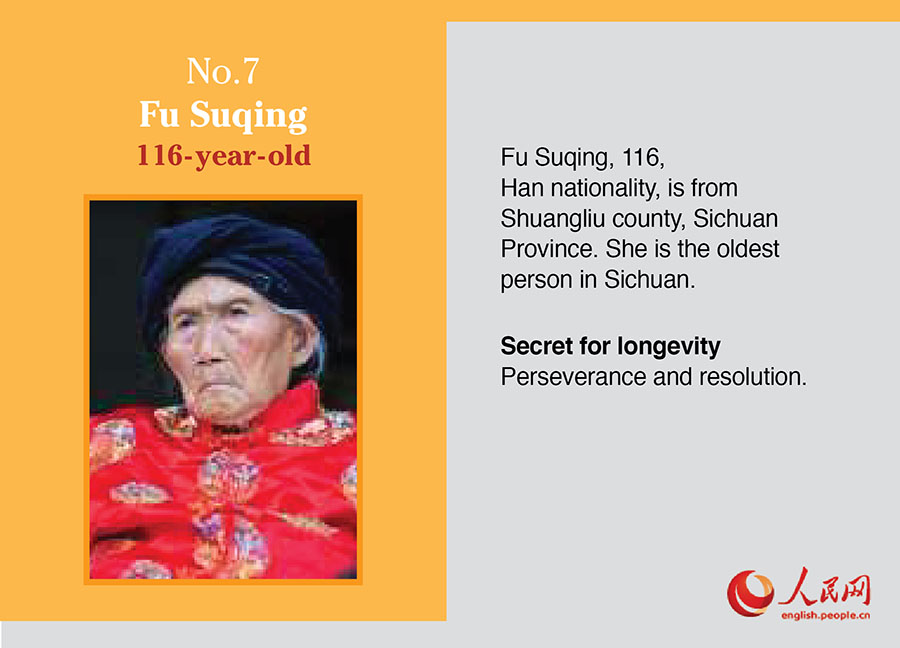 On Oct. 21, the Gerontological Society of China unveiled the list of the 10 oldest living people in China. Their average age is 119.7 years old. Of the 10, one is male and the others are female. They are from 7 provinces and 6 different ethnic groups. The three oldest ones are from Xinjiang.