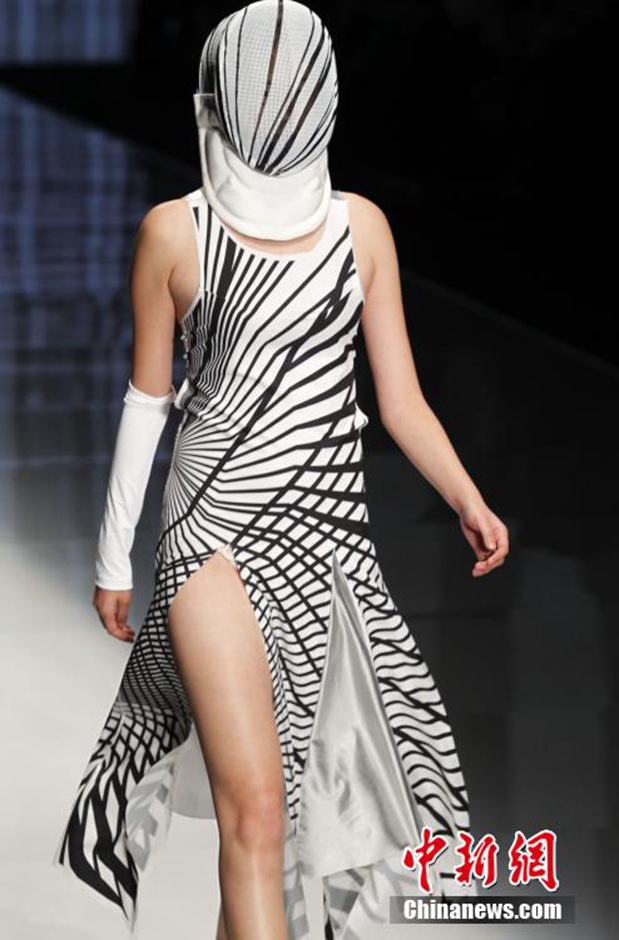 A model displays a creation by a designer during China Fashion Week in Beijing on October 28, 2014. (Photo: China News Service/Du Yang)