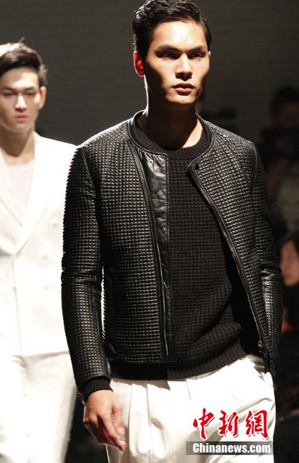 A model displays a creation by a designer during China Fashion Week in Beijing on October 28, 2014. (Photo: China News Service/Du Yang)
