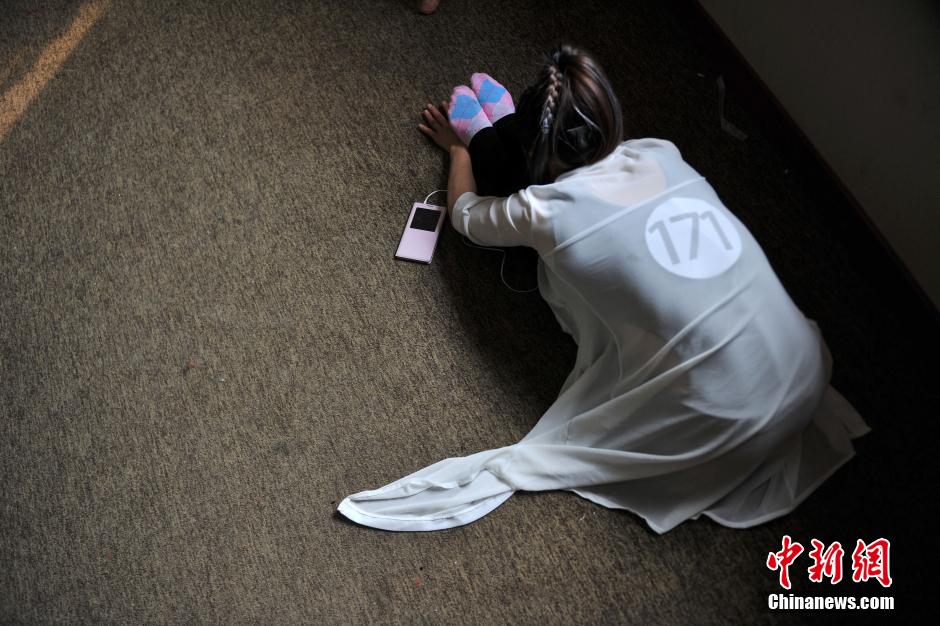 Contestants do warm-up exercises backstage. (Chinanews/Jin Shuo)