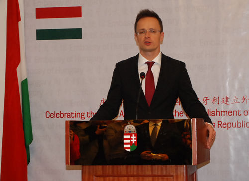 Speaking at Hungarian embassy's reception to mark the 65th anniversary for establishing diplomatic relations between Hungary and China, Szijjártó pointed out that China's strategy of New Silk Road and Hungarian government's East Open Link are matched together, and they can strengthen each other.