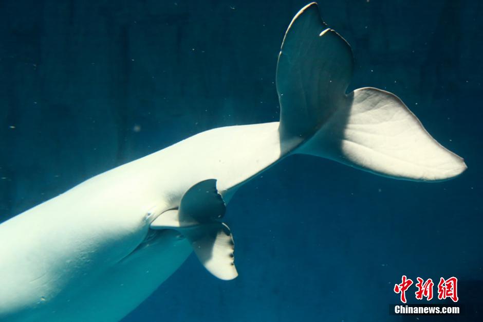 A white whale named "Zhuo Ya" gives birth to a baby in Changsha Aquarium in Changsha, central China's Hunan province on Oct. 29, 2014. The whole process had been recorded by the camera. (CNS/Huang Wei)