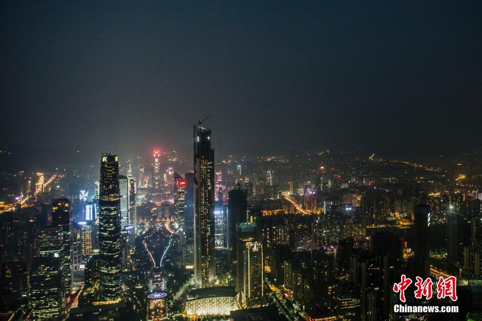 The construction of 530-meter Guangzhou Chow Tai Fook Financial Center, namely East Tower, completes on Oct.28, 2014. (CNS/Long Yuyang)