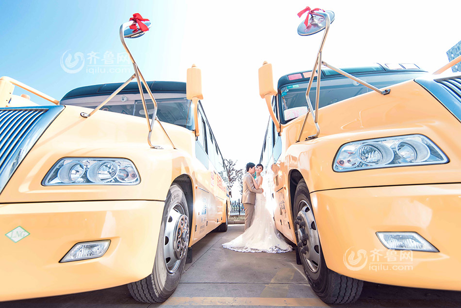 A collection of pre-wedding photos using "big nose" school buses as background has become viral on the Internet recently. The bride Zhang Fan is an employee of the Wenxing School Bus Company of Qingdao Transportation Corporation, whose work is mainly concerned with safety issue of school buses. Zhang says school bus is like another "home" to her, and taking pre-wedding photos in front of them could be her most precious and meaningful memento. (Photo/Iqilu.com)
