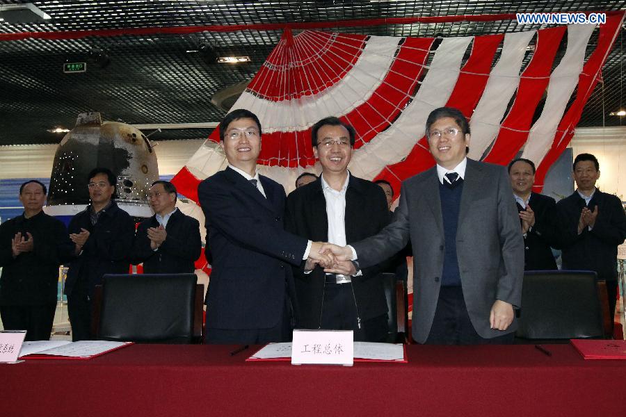 Delegates attend the handover ceremony of the return capsule of China's unmanned lunar orbiter in Beijing, capital of China, Nov. 2, 2014. Return capsule of China's test lunar orbiter landed successfully early Saturday morning in north China's Inner Mongolia Autonomous Region. (Xinhua/Shen Bohan)