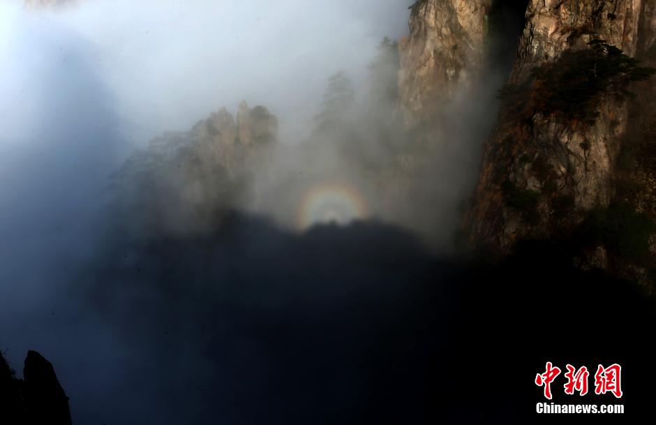 "Budha Halo" is seen after rainfalls at Mount Huangshan in east China's Anhui province, Nov. 1, 2014. (Source: Chinanews.com)