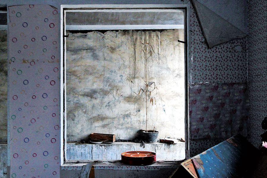 Plants left by its owner are still alive in a house under dismantlement. (Photo/dahe.cn)