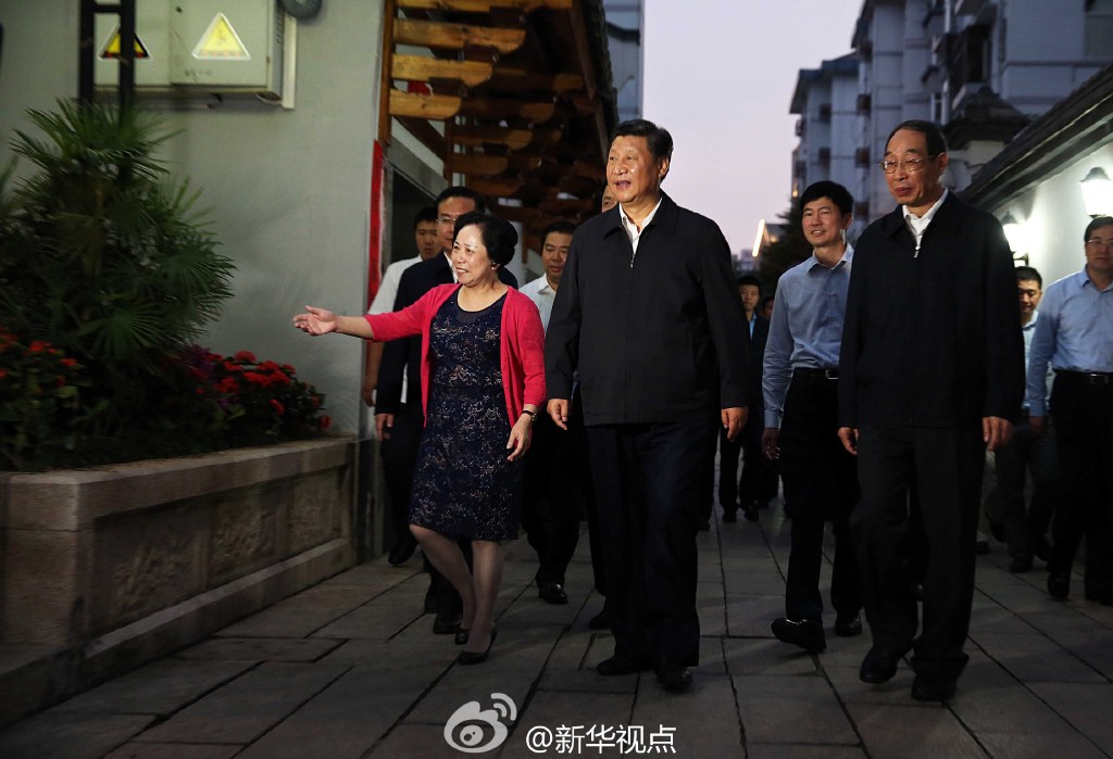 Chinese President Xi Jinping visits the Junmen Community in Fuzhou, Fujian province, Nov. 1, 2014. (Photo source: Weibo account of Xinhua Shi Dian)