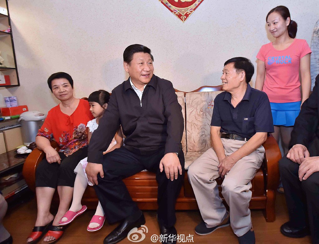 Chinese President Xi Jinping visits a family in Fuzhou, Fujian province, Nov. 1, 2014. (Photo source: Weibo account of Xinhua Shi Dian)