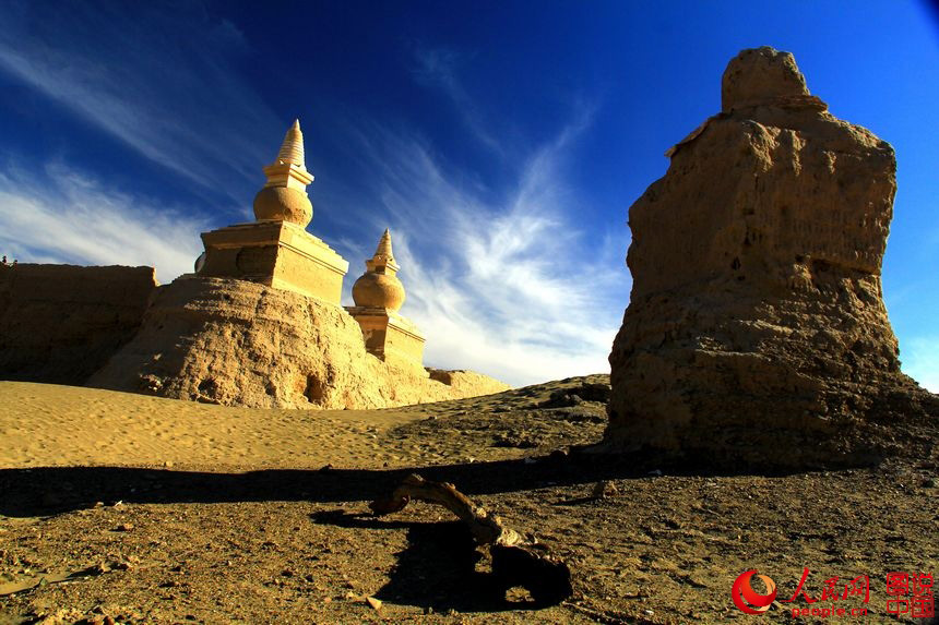 Heicheng city relic is located in Ejin Banner, north China’s Inner Mongolia Autonomous Region. It is the biggest and best-preserved ancient city relic along the Silk Road. The landmark building of the city is a 13-meter-high pagoda. Although part of the city has been covered by the sand, the city layout is still neat. (Photo source: people.cn)