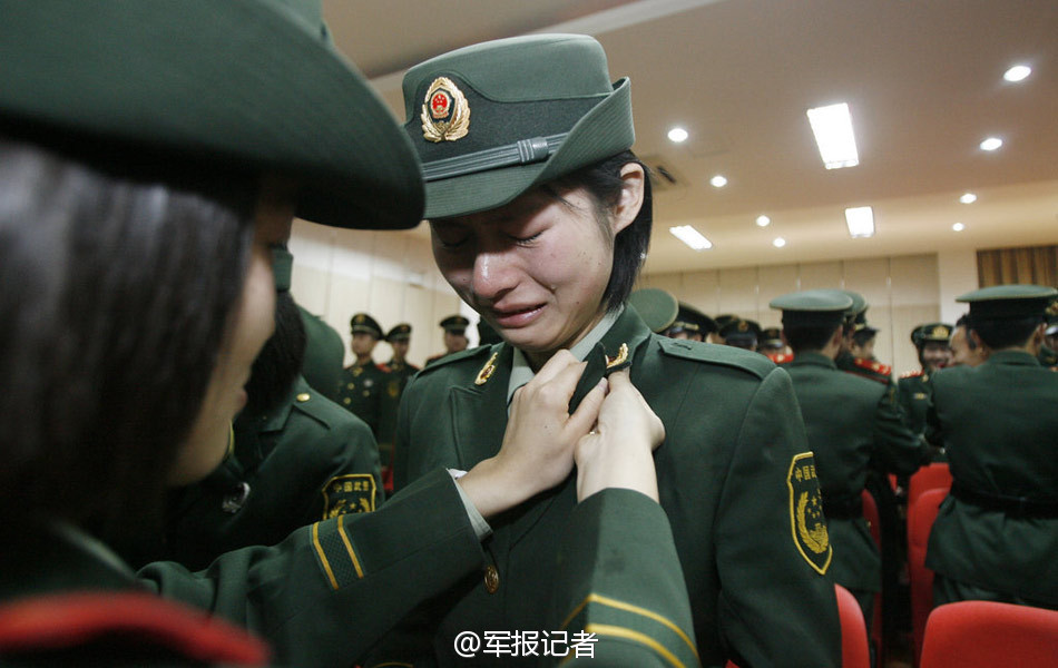 Soldiers are grieved to bid farewell to their military ranks and guns when are discharged from active duty. (Photo/Official Micro-blog of Junbao Jizhe)