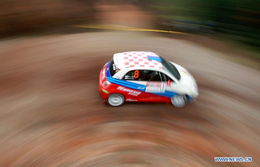 Shen Huilan/Chen Yiwen of team MIT motorsport compete at the super special stage of the 2014 Asia-Pacific Rally Championship held in Longyou, east China's Zhejiang province, on Nov. 7, 2014. (Xinhua/Li Ming)