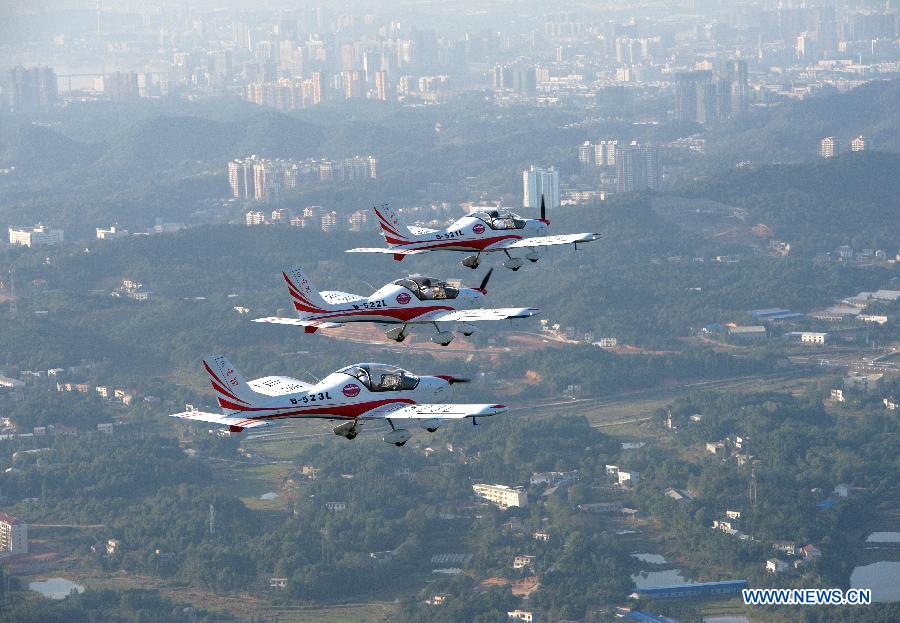 Chinese aerial acrobatic team will perform at the upcoming 10th China International Aviation and Aerospace Exhibition. The biennial air show is to be held in the southern port city of Zhuhai, Guangdong province from Nov. 11 to Nov. 16. (Xinhua Photo)