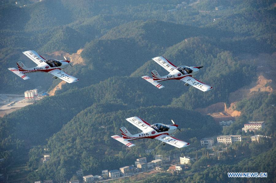 | Chinese aerial acrobatic team will perform at the upcoming 10th China International Aviation and Aerospace Exhibition. The biennial air show is to be held in the southern port city of Zhuhai, Guangdong province from Nov. 11 to Nov. 16. (Xinhua Photo) |