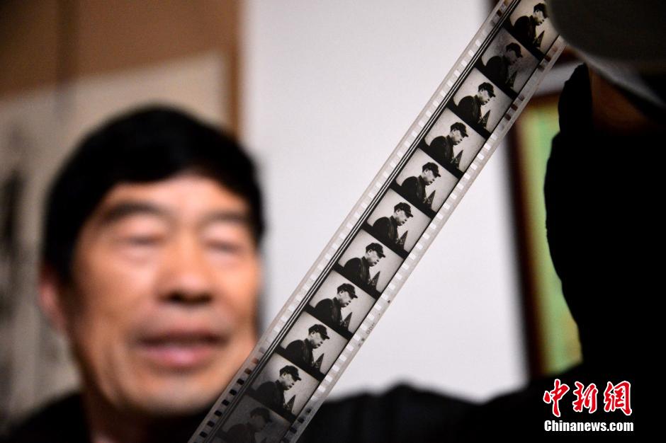 Wei Shaoxian checks films of his collection of red movies. (CNS/Hao Qunying)