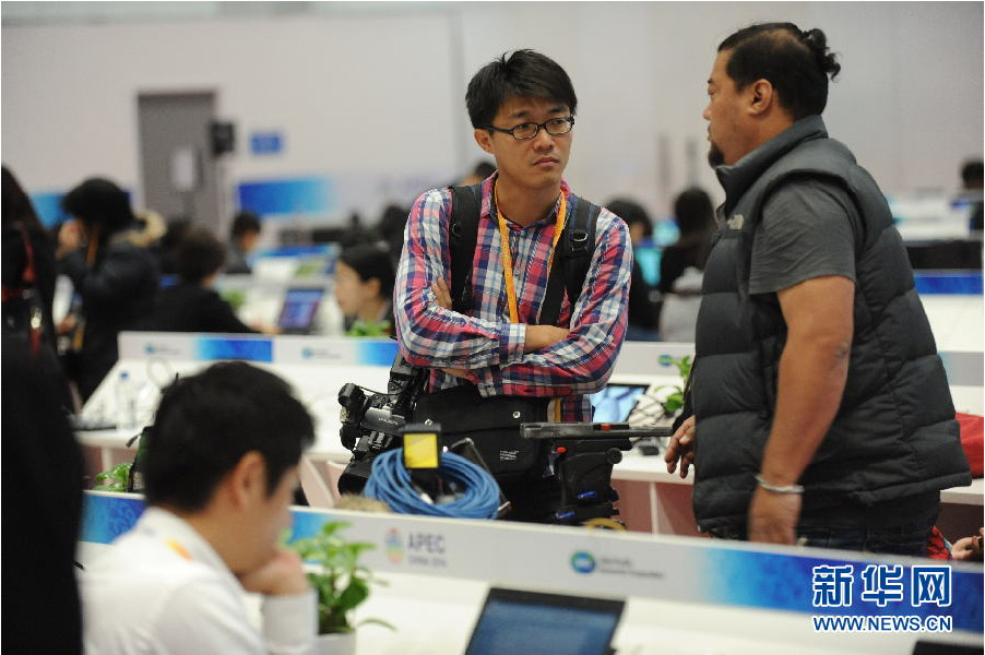 The public work space of the APEC press center. (Xinhuanet/Chen Jingchao)