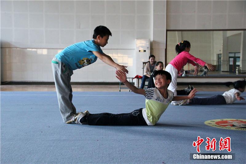 Ye Mengcheng practices basic moves of Chinese kung fu. (Chinanews/Lin Bo)