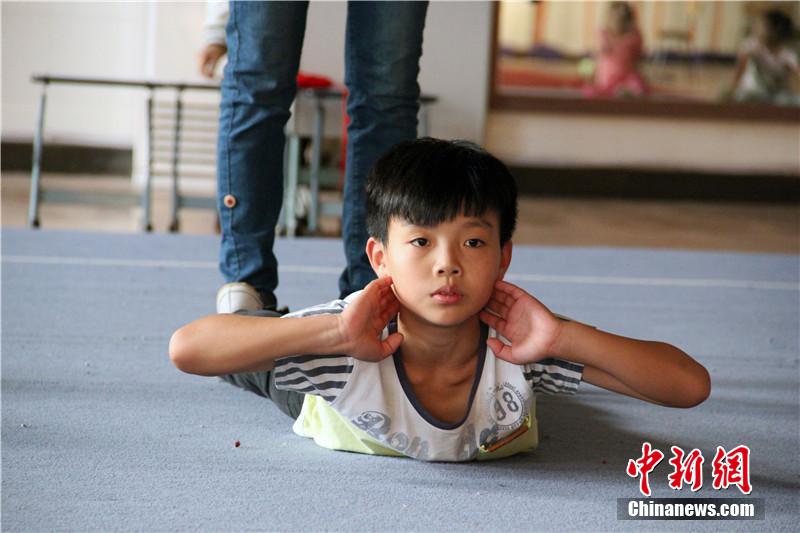 Ye Mengcheng practices basic moves of Chinese kung fu. (Chinanews/Lin Bo)